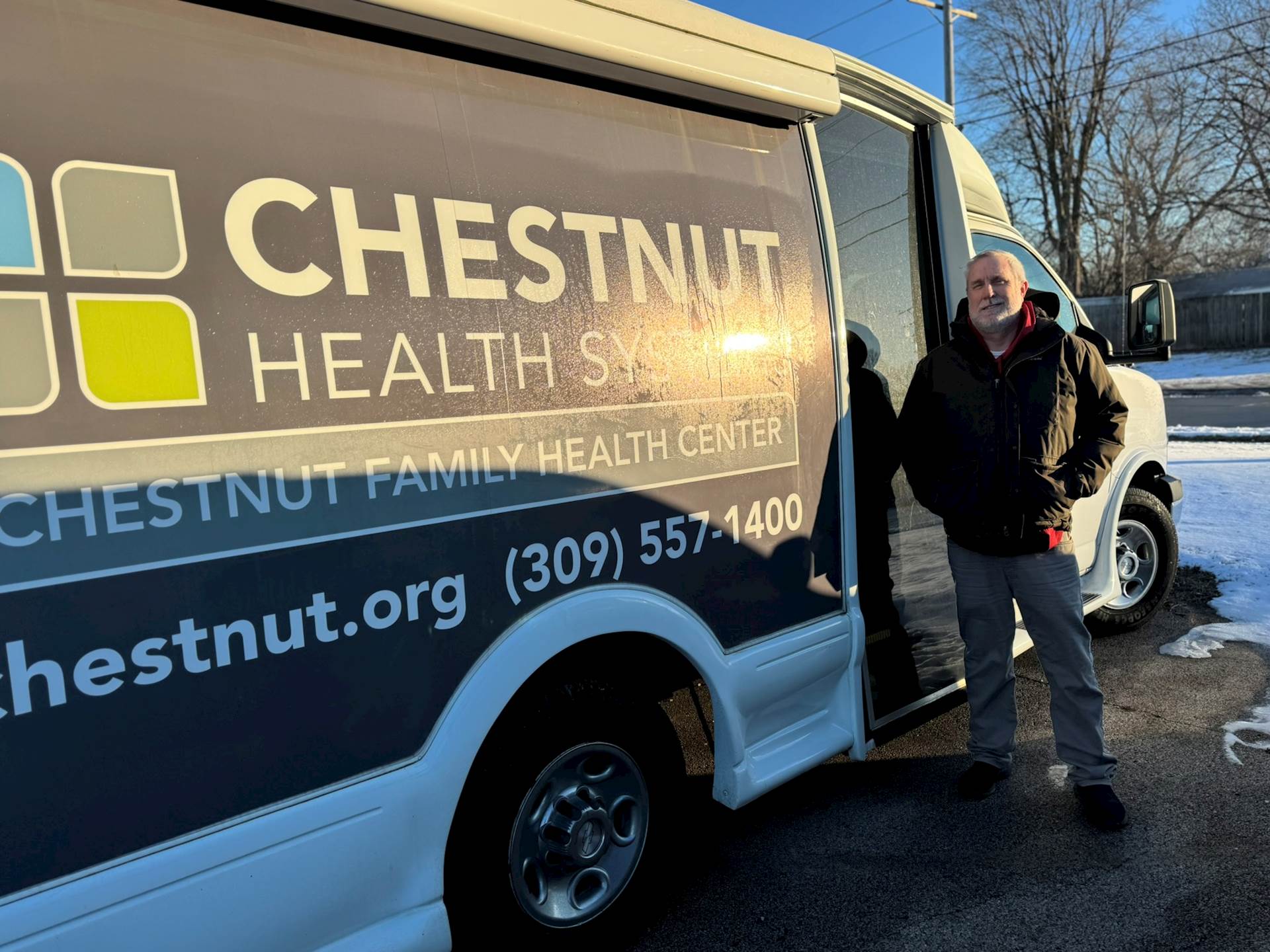 Sean books him an appointment at Chestnut’s new dental office. He says the Chestnut’s “mobile unit”, an exam room on wheels, will be parked outside his shelter the next day. Sean books another appointment at the mobile unit so Chestnut’s newest client can be officially established at his new healthcare home to receive both primary and mental health care.