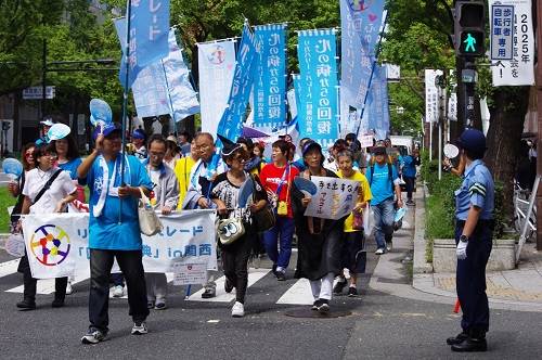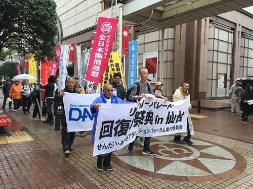 Among many such visits, my 2007 lecture tour in Japan was a particularly wonderful experience. I will forever remember the graciousness, warmth, and commitment of the recovery advocates I met during my time in Japan. Since then, I have been blessed with regular updates on recovery advocacy activities in Japan. The most visible centerpiece of the Japanese recovery advocacy movement is the hosting of annual recovery parades in numerous Japanese cities. In 2018, more than 1,500 people participated in the parades in nine Japanese cities. Below are images from the recovery parades in Hiroshima, Kansai, Okinawa, Sendai, and Yokohama. These images add to the visual evidence of the worldwide cultural and political mobilization of people in recovery and their families and allies.